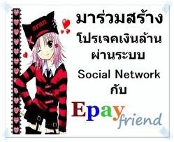 รวยแรง รวยเร็วด้วยระบบ Epayfriend ระบบที่จะทำให้คุณ ก้าวเข้าสู่เส้นชัยแห่งความสำเร็จทางการเงิน ในโลกธุรกิจออนไลน์ Epayfriend เป็นระบบที่สุดยอดที่สุด และ hot ที่สุดในเวลานี้ อย่ารีรอที่จะเรียนรู้ระบบอัจฉริยะ Epayfriend ระบบอัจฉริยะการทำงาน เพื่อความสำเร็จในธุรกิจเครือข่ายออนไลน์ ซึ่งจะระบบสร้างรายชื่ออัตโนมัติ ไม่ต้องแค่ทำงานกับคนรู้จัก ไม่ต้องลงสื่อแพงอีกต่อไป ระบบ Social Network ไม่เสียเพื่อน ยิ่งมีเพื่อนยิ่งมีตังค์เหมือน facebook, twitter,hi5 ระบบติดตามผู้สนใจ อัตโนมัติ ไม่ต้องโทรตาม ระบบจะคัดกรอง ทำงานแทน 94% ระบบเรียนรู้ออนไลน์ 100% ไม่ต้องเดินทาง ไม่มีความรู้ ไม่มีประสบการณ์ ก็ทำได้ ทำให้คุณสามารถสร้างรายได้ แบบไร้ขีดจำกัด รีบลงทะเบียนเรียนรู้ข้อมูลและทดลองระบบฟรี 90 วัน (มีที่ไหนอีก) หากคุณกำลังหาเครื่องมืออะไรบางอย่างที่จะสามารถช่วยคุณให้มี ชีวิตที่ดีขึ้นบอกเลยว่าอย่าพลาดที่จะเข้าไปทดลองระบบ ที่ทำให้ดิฉันสามารถสร้างรายได้ 15 วันแรก 28,500 ฟรี...ฟรี...ฟรี สร้างเพื่อนสร้างรายได้ ด้วยระบบ Social Network