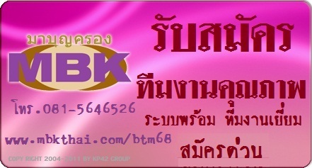 http://mbk.baantonmayom.net ฟรี เว็ปไซต์ขยายสายงาน พร้อมระบบสนับสนุนการทำงาน ทั้งออนไลน์ และออฟไลน์ โดยแม่ทีมระดับเงินล้าน จากค่ายดัง มาฟอร์มทีมต้นสายที่นี่กันแล้ว แล้วคุณจะรอช้าอยู่ทำไม!!