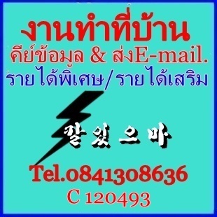เป็นการคีย์ข้อมูลและส่งอีเมลล์ กระจายสื่อ ทางInternet รับงานกลับไปทำที่บ้านได้ คุณสมบัติของผู้สมัคร -จบการศึกษา ม.3 ขึ้นไป และ อายุ 18 ปี ขึ้นไป ชาย/หญิง(ไม่จำกัดเพศ) -มีความรับผิดชอบ -ทำงานวันละประมาณ2-3ช.ม.&ไม่จำเป็นต้องมีประสบการณ์(มีการสอนงานฟรี)