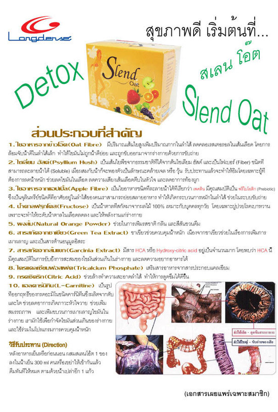 และ มีอีกตัวนึง ชื่อ slend oatครับเป็นตัว Detox กินคู่กันจะสามารถช่วยลดน้ำหนักและเห็นผลดีขึ้น
