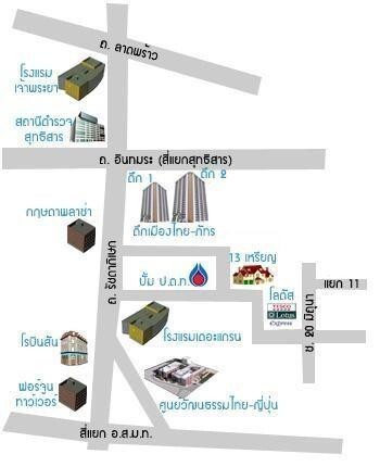 ติดกับตลาดสุทธิสาร เดินทางโดยรถไฟฟ้าใต้ดิน ลงสถานีสุทธิสาร ออกประตู 3