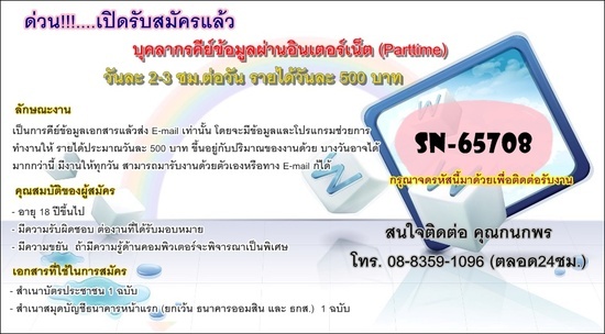 รับสมัครด่วน !!! วัยรุ่น-วัยทำงาน Part time, Full time 500 บาท/วัน โพสต์เน็ต ส่งเมล ทำงานที่บ้านได้ค่ะ