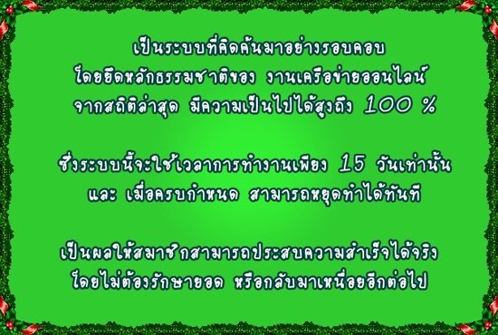 พบแล้ว!..วันนี้ ระบบที่การันตีความสำเร็จ 100% หนึ่งเดียวในไทย คือระบบที่ให้ค่าตอบแทนสูงสุด สร้างรายได้ 1,440,000 บาท ต่อเดือน รับ 1-5 แสนบาทใน 3 เดือน ไม่สำเร็จยินดีคืนเงิน ทุกบาทที่ลงทุนไป