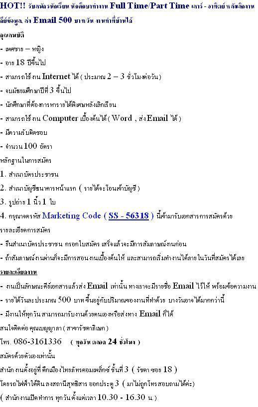 รับ-ส่งEmail : 500 บาท/วัน part time