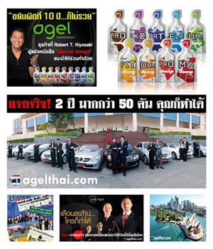 * Agel - เอเจล ประสบความสำเร็จอย่างสูงในไทย เพียง 1 ปี ขึ้นอันดับที่ 9 ของ ธุรกิจเครือข่าย (MLM) ของไทย ยอดขายปี 51 ถึง 485 ล้านบาท และครึ่งปี 52 มียอดขายมากกว่า 800 ล้านบาทไปแล้ว