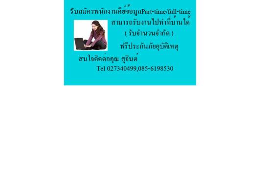รับสมัครพนักงาน Part-time คีย์ข้อมูลทำงานที่บ้านได้ รายได้เสริมที่ดี 027340499