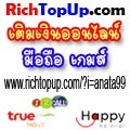 RichTopUp ให้บริการ เติมเงินออนไลน์ ให้กับมือถือในระบบ One-2-Call, Happy, TrueMove และยังมีบัตรเติมเงินเกมส์ออนไลน์ ทุกรูปแบบ ทุกราคา ให้บริการกับสมาชิกของเรา เติมเงินให้ตัวเองก็ได้ส่วนลด ถ้าหากเติมเงินให้คนอื่น ยิ่งได้กำไรจากส่วนลด และเก็บค่าบริการต่อครังได้อีกด้วย