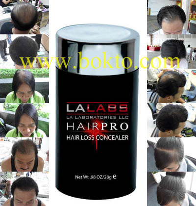 HAIRPRO แฮร์โปร เป็นนวัตกรรมที่ทำมาจากเส้นใยโปรตีนเล็กๆจำนวนมาก ที่มีประจุไฟฟ้าสถิตย์ เมื่อโรยบริเวณผมที่บาง และรอยแสก เส้นใยโปรตีนเหล่านี้เองจะยึดเกาะเส้นผมจริงและ หนังศรีษะ และจะรวมกันเป็นกลุ่มผม ทำให้ผมของคุณดูหนา ดกดำและดูเป็นธรรมชาติในทันที ด้วยวิธีใช้ที่ง่ายแสนง่าย และรวดเร็ว เพียงโรย HAIRPRO ลงบริเวณที่ผมบาง และรอยแสกให้ทั่วจนไม่เห็นหนังศรีษะ จากนั้นใช้มือตบลูบเบาๆ แล้วพ่น Hairlock Sprayบางๆ เพื่อเพิ่มการยึดเกาะให้ดียิ่งขึ้น หากต้องเผชิญกับฝนตกหรือลมแรง HAIRPRO เป็นผลิตภัณฑ์ที่ทำจากวัสดุธรรมชาติที่มีคุณภาพ จึงไม่ทำให้คันแม้เวลาเหงื่อออก ดังนั้นไม่ว่าจะเล่นกีฬา หรือออกกำลังกาย เหงื่อออกมาก ก็ไม่ไหลเยิ้มแต่อย่างใด และไม่ทำให้เลอะเทอะเสื้อผ้า สามารถปัดออกได้ง่าย เพราะ HAIRPRO ไม่ใช่สี แต่เป็นเส้นใยเล็กๆจำนวนมาก จึงไม่ทำให้เสื้อผ้าของคุณเลอะเทอะ การล้างออกก็ทำได้โดยง่าย เพียงสระผมด้วยแชมพูธรรมดาตามปกติ