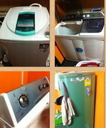 2. อุปกรณ์ซักอบรีดครบอาทิ เครื่องอบผ้า World Pool 11 kg.รุ่นใหม่ล่าสุด (เพิ่งซื้อเมื่อวันที่ 24 ธค. 54) เครื่องซักผ้าฝาบนยี่ห้อ Hitachi 14 kg. (เพิ่งซื้อ 3 มค 55) และเครื่องซักผ้าแยกถัง 11.5 kg.(เพิ่งซื้อวันที่ 8 มค.) เตารีดปกติ 3 ตัว (ลูกจ้างไม่ใช้เครื่องเตารีดไอน้ำ), เครื่องรีดไอน้ำ @ home 1 ตัว, โต๊ะรองรีด 3 ตัว พร้อมเข้าใช้งานต่อได้ทันที