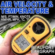 เครื่องวัดความเร็วลม และอุณหภูมิ (Anemometer) ระบบดิจิตอล (m/s, Km/hr, ft/min, knots, mph, Beaufort)