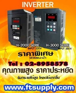 จำหน่ายอินเวอร์เตอร์คุณภาพดี ราคาประหยัด รุ่น H-2000 Input 1Phase 220v 0.37kw 3.7kw รุ่น H-3200 Input 1Phase 220v 0.37kw 475kw รุ่น H-3400 Input 3Phase 380v 0.37kw 475kw ดูรายละเอียดและสินค้าเพิ่มเติมได้ที่ http://www.ftsupply.com หรือโทร .02-8958578 ,02-8958598 ,086-3151898