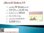 แผ่นพลาสติก pp คุณภาพสูง เพื่อนำไปแปรรูป สำหรับงานพิมพ์ออฟเซท สกรีน ไดคัท สำหรับขายปลีก อาทิ ลายทราย ลายเส้น ลายกระจก เป็นต้น ซึ่งมีความหนาต่าง ๆ อาทิ 0.20 มม 0.45 มม 0.50 มม 0.60 มม 0.70มม เป็นต้น