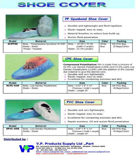 Shoe Cover CPE Shoe Cover PPSB ทุกชนิด ราคาส่ง 02-868-2211 www.vpproduct.com