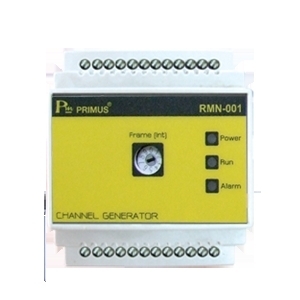 RMN-001: Channel Generator/Two Wire/2-Wire เป็นอุปกรณ์ที่เป็นหัวใจหลักของระบบควบคุมระยะไกลผ่านสายสัญญาณ 2 เส้น ทำหน้าที่ในการสร้างคลื่นความถี่พาหะ (Career) ที่จะส่งผ่านไปยังสายสัญญาณ 2-Wire เพื่อที่จะสร้างช่องสัญญาณที่ให้ตัว I/O Modules สามารถสื่อสารผ่านสาย 2-Wire ได้ ด้านหน้าของ Channel Generator จะมี Rotary Switch ที่ใช้ในการกำหนดจำนวนเฟรมที่จะส่งในแต่ละ Phase ซึ่งเป็นการกำหนดช่องสัญญาณสูงสุดที่สามารถสื่อสารกันได้ และยังเป็นการกำหนดความไวในการตอบสนองของ I/O Modules ด้วย ในระหว่างการรับส่งข้อมูลตัว Channel Generator จะทำการตรวจสอบความถูกต้องของข้อมูล และทำการส่งค่า Checksum เข้าไปในตอนสุดท้ายของเฟรมข้อมูลไปยังตัว I/O Modules เพื่อยืนยันว่าข้อมูลที่ Channel Gennerator ได้รับตรงนั้นตรงกับข้อมูล I/O Modules ส่งไปหรือรับมา ถ้าข้อมูลทั้งสองฝั่งที่รับไม่ตรงกัน Channel Generator จะทำการทวนสัญญาณใหม่อีกครั้ง ถ้ายังมีข้อผิดพลาดภายในข้อมูลอีก ตัว Channel Generator จะให้สัญญาณเตือนผ่านไฟ LED Alarm และ Relay Alarm ข้อมูลทางเทคนิค