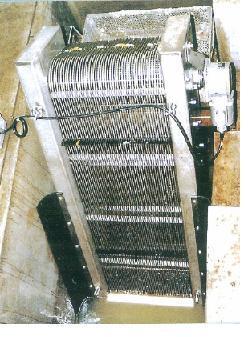 เครื่องจักรที่ใช้สำหรับแยกเศษขยะที่ปะปนมากับน้ำเสียออก โดยน้ำเสียจะไหลผ่านตะแกรงของเครื่องจักรและเศษขยะที่มีขนาดใหญ่กว่าช่องตะแกรงจะถูกดักไว้ที่ด้านหน้าของตะแกรง เพื่อป้องกันไม่ให้ขยะไหลเข้าไปในระบบถัดไป ตะแกรงมีลักษณะทรงลิ่มซึ่งมีประสิทธิภาพในการป้องกันไม่ให้ขยะติดและอุดตันระหว่างซีกตะแกรง ขยะจะถูกหวีกวาดขยะทำการกวาดขยะไปยังภาชนะเก็บขยะที่อยู่ด้านหลังของตะแกรง