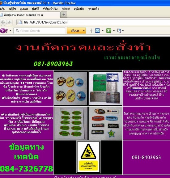 @รับซิลค์สกรีน งานด่วน นามบัตร การ์ดแต่งงาน เหล็ก อลูมิเนียม รับออกแบบผลิตป้าย ป้ายโลหะกัดกรด (สแตนเลส อลูมิเนียม ทองเหลือง ทองแดง) ป้ายอลูมิเนียมอโนไดซ์ พิมพ์ซิลล์สกรีนสติ๊กเกอร์ ป้ายแกะอลูมิเนียม ป้ายพีวีซี และพีวีซี ขุ่น-ใส,ป้ายชื่อบริการ รับทำhttp://th.88db.com/th/Services/Ad.listing/Business_Services/Printing_Publishing/?Q=&O=post&CatID=4040000&SubCatID=4041600">ป้ายอักษรโลหะ จาก สังกะสี สแตนเลส ทองเหลือง ทองแดง ใช้สำหรับทำป้ายบ้านเลขที่ ป้ายบริษัท ป้ายอะคริลิค
