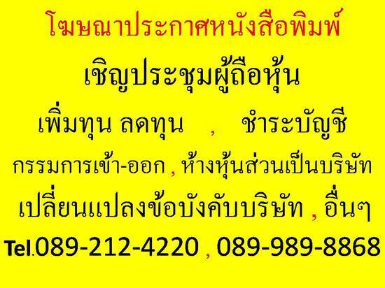 -�������ประกาศให้ลูกค้ามารับของที่ซ่อม������������������ - ลงโฆษณาเชิญประชุมผู้ถือหุ้นประจำปี