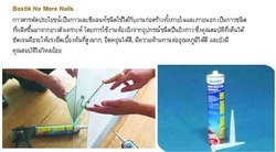 กาวBostik No More Nailsกาวสารพัดประโยชน์เป็นกาวและซีแลนท์ชนิดใช้ได้กับงานก่อสร้างทั้งภายใน และภายนอกใช้ยึดติดโลหะท่อนไม้และแผ่นวัสดุอื่นๆได้ใช้กับคอนกรีต ซีเมนต์ พลาสเตอร์และซีเมนต์ สังเคราะห์ได้หรือพ