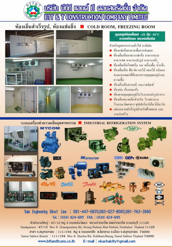 ออกแบบและสร้างระบบห้องเย็นพร้อมระบบแช่แข็ง