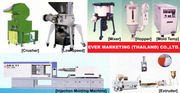 จำหน่ายเครื่องจักรและอุปกรณ์สำหรับอุตสาหกรรมพลาสติก นำเข้าจากต่างประเทศ เช่น เครื่องบดพลาสติก, Hopper Dryer, เครื่องผสมสี, Chiller, Mold Temperature และเครื่องมืออื่นๆครบวงจร (แม่เหล็ก, คีมตัดชิ้นงานไฟฟ้า, ที่ยึดแม่พิมพ์, ขารองเครื่องฉีด)