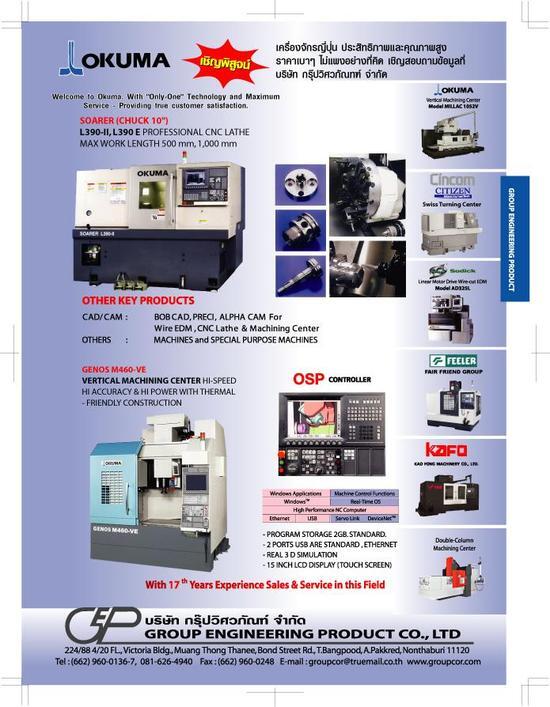 บริษัท กรุ๊ปวิศภัณฑ์ จำกัด จำหน่ายและให้คำปรึกษาด้านเครื่องจักรการผลิตต่าง ๆ เช่น CNC Lathes, Machining Center, EDM, Wire Cut, Grinding Machine.,etc. บริษัท กรุ๊ปวิศภัณฑ์ เป็นตัวแทนจำหน่ายเครื่องจักรการผลิตที่มีชื่อเสียงมากมาย เช่น OKUMA ,Fanuc, Sodick,Citizen,Kafo ,Feerer.,etc. กรุ๊ปวิศภัณฑ์ ได้รับการยอมรับจากลูกค้ามากมายในด้านการนำเสนอเครื่องจักรที่มีคุณภาพสูงและบริการหลังการขายที่เป็นเลิศ Thanks You and Best Regards,