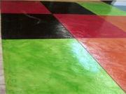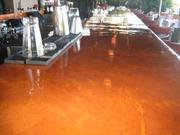 -งานพื้น รอพื้นซีเมนต์หมาดน้ำ โรยสีให้ทั่วใช้เกรียงขัดมันหรือเครื่องขัด บนพื้นผิวซิเมนต์