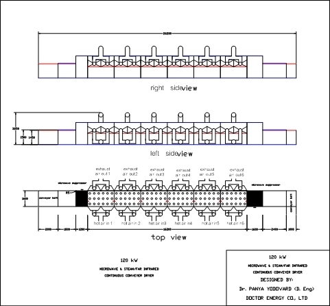 2. Model HB-MW-IF/S-120 ขนาด 120 กิโลวัตต์ กำลังการอบแห้งเส้นก๋วยเตี๋ยว ธัญพืช ผลิตผลทางเกษตร ประมาณ 200 กิโลกรัมต่อชั่วโมง