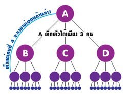 สมาชิก 1 คนสามารถมีสายงานได้เพียง 3 คนเท่านั้น เรียงเป็นหน้ากระดาน ทีละชั้น