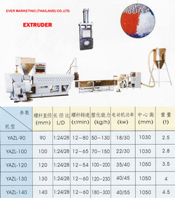 เครื่องรีดพลาสติก (Extruder) - สำหรับผลิตเม็ดพลาสติก ควบคุมความเร็วรอบด้วยอินเวอร์เตอร์,ตระแกรง2ชั้น สลับด้วยไฮดรอลิก