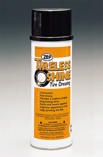 Zep Tireless shine is a solvent-based, fast drying, high gloss, ready-to-use, silicone dressing for automobile tires. It has been formulated to quickly develop a uniform, long-lasting shine. Tireless Shine will improve tire appearance and help prolong tire life. It will not build up or run, and is less likely to spin off when the vehicle is in operation. Zep Tireless Shine is also available in liquid form.