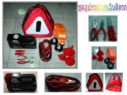 ชุด อุปกรณ์ฉุกเฉินติดรถ มีไว้ประจำรถเมื่อเกิดเหตุการณ์ไม่คาดคิด รถเสีย น้ำมันหมด ยางแบน แบตเตอรี่หมด ประกอบด้วยอุปกรณ์จำเป็นดังนี้