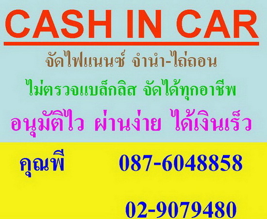 CASH IN-CAR รับจัดไฟแนนซ์ จำนำทะเบียน สินเชื่อรถยานต์ เงื่อนไขไม่ยุ่งยากพร้อมให้คำปรึกษา คุณพี 087-6048858 ,0802931404,029079480