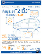 3.2 ความรับผิดต่อทรัพย์สินของบุคคลภายนอก * อัตราเบี้ยประกันภัยภาคสมัครใจ ประเภท 3 4. กรรมธรรม์ระเภท 4 ให้ความคุ้มครองทรัพย์สินของบุคคลภายนอก 4.1 รับผิดต่อทรัพย์สินของบุคคลภายนอก 100,000 บาท/อุบัติเหตุแต่ละครั้ง * อัตราเบี้ยประกันภัยภาคสมัครใจ ประเภท 4 5. กรมธรรม์ประเภท 5 แบบคุ้มครองเฉพาะภัย แบ่งเป็น 2 แบบ ดังนี้ แบบ 2+ : ความรับผิดต่อความเสียหายต่อ ชีวิต ร่างกาย หรืออนามัยของบุคคลภายนอก
