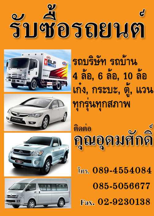 รับซื้อรถ รถบริษัท รถบ้าน รถเก๋ง รถกระบะ รถบรรทุก 4ล้อ 6ล้อ 10ล้อ ทุกรุ่น ทุกสภาพ ต้องการขายรถ ติดต่อ คุณ อุดมศักดิ์ โทร 089-4554084 ,085-5056677