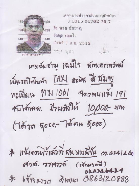 ตามรถหาย ทม-1061 แท็กซี่ สีชมพู