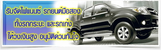 ศูนย์บริการ จัดไฟแนนซ์ ครบวงจร (สคบ) จำนำทะเบียน --รีไฟแนนซ์ --ไถ่รถยึด --ปิดบัญชี -- ย้ายไฟแนนซ์ จัดใหม่ มีเงินใช้ ผ่อนได้นาน-- ดอกเบี้ยต่ำ ให้ยอดสูง --ไม่เช็คแบล็คลิส-- ไม่ต้องเป็นเจ้าบ้าน ทะเบียนบ้านต่างจังหวัด+บ้านเช่า ไม่ต้องใช้ผู้ค้ำประกัน --รถ ซื้อ-ขาย กันเองก็จัดได้-- ไม่ต้องดูสภาพรถก็ประเมินราคาให้ได้ มีเจ้าหน้าที่บริการทำสัญญาถึงที่ สะดวก ง่าย รวดเร็ว ไม่ยุ่งยาก จะซื้อ - ขายรถ...ต้องการหาไฟแนนซ์... จัดที่อื่นไม่ผ่าน ..-- ผ่านง่าย คุยกันได้ทุก ๆ เงื่อนไข *รับรถทุกประเภท รถยนต์ เก๋ง , กระบะ , ตู้ , แท็กซี่(เขียวเหลือง) -มีแค่บัตรประชาชนและทะเบียนบ้านก็จัดได้ ยินดีให้คำปรึกษาสำหรับท่านที่จัดที่อื่นแล้วไม่ผ่าน เงื่อนไขตามใจคุณสอบถามเพิ่มเติมได้ที่