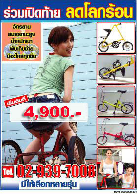 http://www.china-thai.com/">http://www.china-thai.com รถจักรยานพับได้นำเข้า เกรดA มีให้เลือกหลายรุ่น ราคาขายส่ง พร้อมบริการอะไหล่ทุกชิ้น ติดต่อ คุณพงษ์อนันต์ Office: 02-9397008 หรือต้องการเป็นตัวแทนจำหน่าย ติดต่อได้ที่ 082-0038808 คุณพงษ์อนันต์ 082-0038808 E-mail: [email protected] http://www.china-thai.com/">http://www.china-thai.com Office: เขต จัตุจักร กรุงเทพ