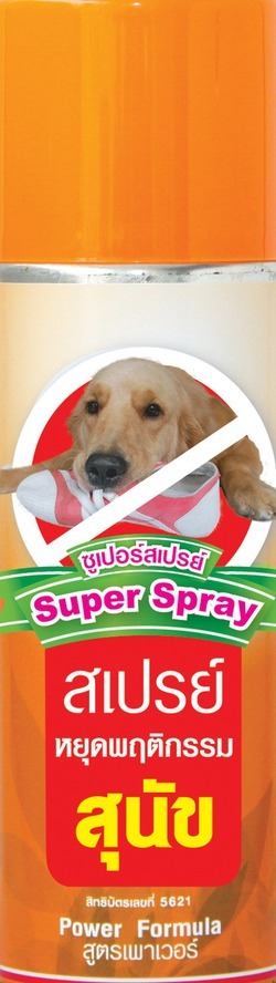 หยุดทุกปัญหาพฤติกรรมไม่พึงประสงค์ของสุนัขได้ด้วย Super Spray ด้วยสารสกัดจากธรรมชาติจึงปลอดภัยต่อคนและสัตว์เลี้ยง ซึ่งเมื่อสุนัขได้รับกลิ่นของซูเปอร์สเปรย์ (ที่ผ่านการคิดค้นมาแล้วว่าเป็นกลิ่นที่สุนัขไม่ชอบ) สมองของสุนัขจะสั่งการให้หยุดหรือลดการแสดงพฤติกรรมลง จึงเป็นนวัตกรรมใหม่ เพื่อหยุดปัญหาพฤติกรรมไม่พึงประสงค์ โดยไม่ใช้ความรุนแรงกับสัตว์เลี้ยง ด้วยสูตรแอทแทค และใหม่ ! สูตรเพาเวอร์