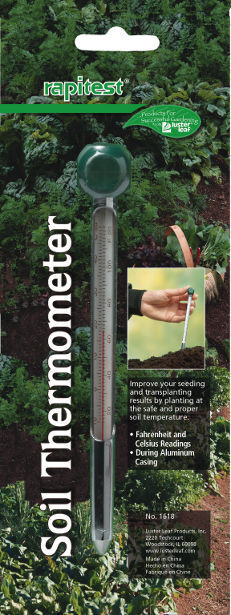 �เทอร์โมมิเตอร์วัดอุณหภูมิของดิน Rapitest� รุ่น 1618 มีหน่วยการวัดค่าอุณหภูมิ ทั้ง ฟาเรนไฮต์และองศาเซลเซียส มีปลอกอลูมิเนียมที่แข็งแรง ให้ค่าการวัดที่ถูกต้องแม่นยำอย่างรวดเร็ว