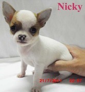 ชิวาวาขนสั้นสีแฟนซีขาว-น้ำตาล ชื่อน้องนิกกี้ เพศผู้ ไซค์เล็ก สายไต้หวันแท้ หน้าสั้น ดั้งแนบ กระโหลกใหญ่ หัวแอ๊ปเปิ้ลโดม ตากลมโตหวาน สายเลือดดี เพ็ดดีกรีเต็มใบคับ...อายุุ41วัน เป็นสุนัขบ้านไม่ใช่ฟาร์ม สุขภาพแข็งแรง น่ารักมากๆๆซนมากด้วย ถ่ายพยาธิแล้ว แม่ขนสั้นสีขาว-น้ำตาลหนัก1.6 กก. พ่อขนยาวสีขาว-ครีมหนัก1.9กก น้องสามารถกินอาหารเม็ดแช่น้ำได้แล้ว ฝึกขับถ่ายบนหนังสือพิมพ์ มีรูปเยอะมากถ้าสนใจขอรูปเพิ่มได้[email protected]
