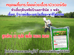 สัมผัสเชื้อ หลังจากสัมผัสเชื้อ 3 วัน แมลงจะเริ่มป่วยและหยุดทำลายพืชและจะตายภายในระยะเวลา 5-14 วัน จากการลงพื้นที่ที่มีการระบาดของเพลี้ย หนอน การใช้บิวเวอร์เรียสูตรธรรมดา กำจัดได้แต่ตัวเพลี้ยหนอน แต่ไข่ได้กำจัด ทำให้ต้องฉีดบ่อยครั้ง เพิ่มทุนต้นในการฉีดมากขึ้น เราจึงได้เพิ่ม พาซิโลมัยซิส ซึ่งสามารถคุมและกำจัดไข่เพลี้ยหนอนได้ในการฉีดเพียงครั้งเดียว ตัวตายไข่ฝ่อ ทำให้เห็นผลดีกว่าการบิวเวอร์เรีย+เมธาไรเซี่ยม สูตรใหม่นี้สามารถกำจัดตัวและไข่ เพลี้ย หนอนได้อย่างดีเยี่ยม รับผลิตเชื้อบิวเวอร์เรียสูตรใหม่ บรรจุขนาด 500,1000 กรัม