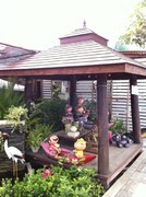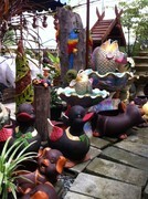 มีต้นไม้เต็มพื้นที่ พร้อมมีศาลา น้ำตก ตุ๊กตาดินเผา พร้อมข้อมูลการดำเนินงาน