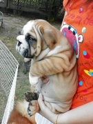 ขายลูกบูลด็อกสีน้ำตาลเต็มตัว ริงเกิ้ลเต็ม เป็นตัวผู้ ตอนนี้อายุได้ 2 เดือนแล้ว ตัวย่นจ้ำม่ำ พ่อคือ AM.TH.CH. Millcoats Catching Away (Catcher) แชมป์อเมริกา สายเลือดดีมาก สนใจโทรสอบถามได้ครับ 084-158-3533