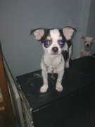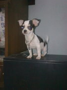 สุนัขพันธุ์ ชิวาวา สีขาวดำ อายุประมาน3 เดือนกว่าๆ ลายข้างหลังเป็ยลายหลังเต่า นิสัยเชื่องมาก ขี้ประจบ ขายราคา 11000 บาท ราคาสามารถคุยกันได้