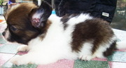 ขายชิวาวาขนยาวสีแฟนซีขาวกับสีนำตาลเข้มแฟนซีขาวสายไตหวันหน้าสั้นหัวโต