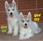 ไซบีเรียนสีเทา-ขาว เพศเมีย ตาสองสีฟ้าซ้าย ทั้ง 2 ตัว