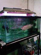 ขายปลาอโรวาน่าเขียวยาวประมานฟุตกว่าๆพร้อมตู้กรองมุม48*20*20+ขาเหล็ก