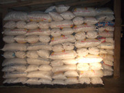 บรรจุกระสอบปุ๋ย และเย็บปากถุงเรียบร้อย