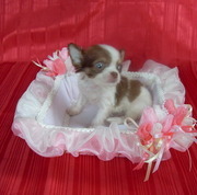 น้อง Gustjung ชิวาวาขนยาว สีขาว น้ำตาล ราคา 9,500 บาท