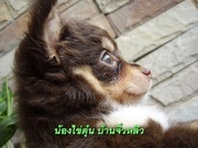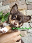 ชิวาวาขนยาวเพศเมียสุดสวย สีช็อคโกแลต มาร์คกิ้งครบ มีคิ้วหน้ากากสีน้ำตาล หน้าอกขาว ถุงเท้าขาว ขนแน่นมากๆ อายุ 50 วัน (เิกิด 20 พ.ค.52)